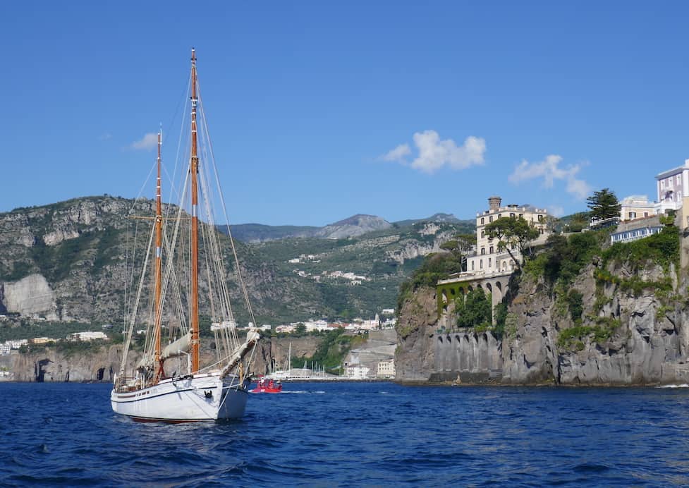 Wenn du dich fürchtest, bei 20 Knoten Wind von Ischia nach Sorrento oder Capri zu segeln, schlägt dir John eine Alternative vor: ein Rendezvous in Amalfi am übernächsten Tag. Wenn du dich aber sicher genug fühlst und ein erfahrener Skipper bist, brichst du nach Capri auf und wir treffen uns in Sorrento. Oder du besuchst Pompei – Eduardo kümmert sich um die Organisation, während Paolo Conte «Via con me» singt. Jeden Morgen führt Skipper John ein nautisches Briefing durch und Eduardo macht uns gluschtig, indem er uns das Abendessen so farbig ausmalt, dass wir bereits den Duft riechen.