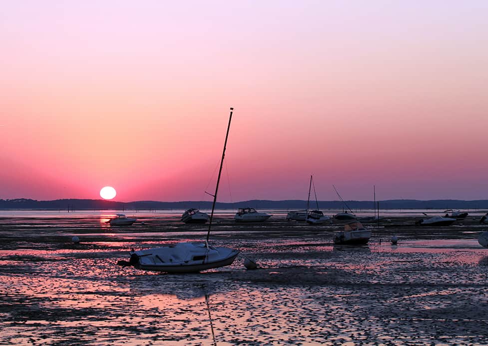 Mittlerweile sind wir in Andernos. Die grossen Sandflächen und der Schlick auf dem Beckengrund eignen sich perfekt zum Stranden. Ein guter Tipp: Tasten Sie den Boden mit den Füssen ab und suchen Sie so den besten Ort, um Ihr Boot richtig zu positionieren. Bei schlammigem Boden wird Ihnen die Cockpitbrause nützliche Dienste leisten. Alternativ können Sie auch einen Eimer mit Wasser füllen, um später die Füsse abzuspülen. Schlamm, Sand, Wasser sowie Ebbe und Flut sind im Bassin d’Arcachon bei jedem Törn ständige Begleiter.